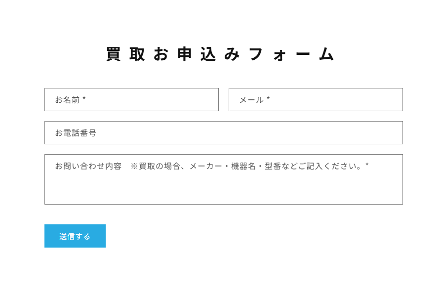 こちらは買取お問い合わせを頂いた際、こちらからヒアリングさせて頂きます。
